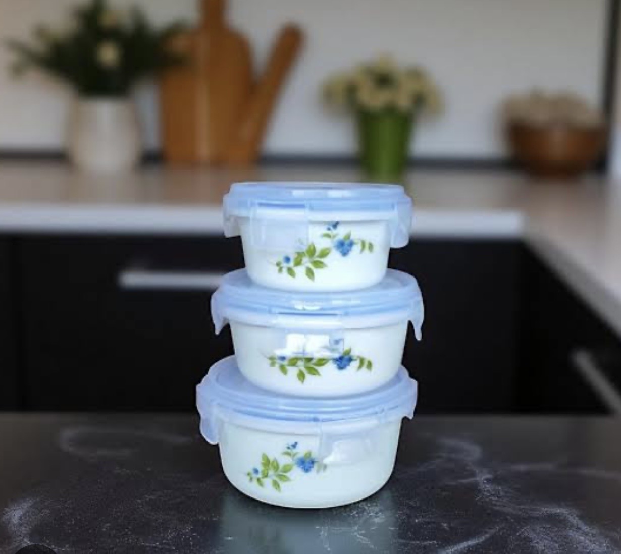 OLAPWARE STORAGE CONTAINER | CELLO | BOWL,GLASS | | 3 PCS SET DIANTY BLUE