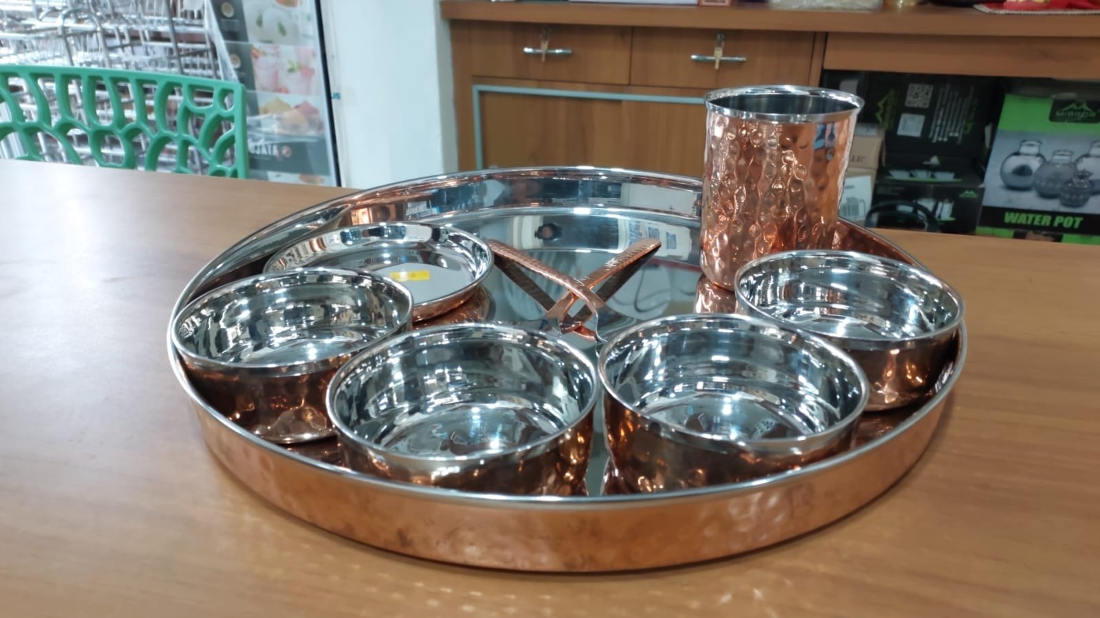 Be the first to review “RAK COPPER HAMMERED THALI SET | MISC | STEEL,COPPER | | 9 PCS SET” Cancel reply