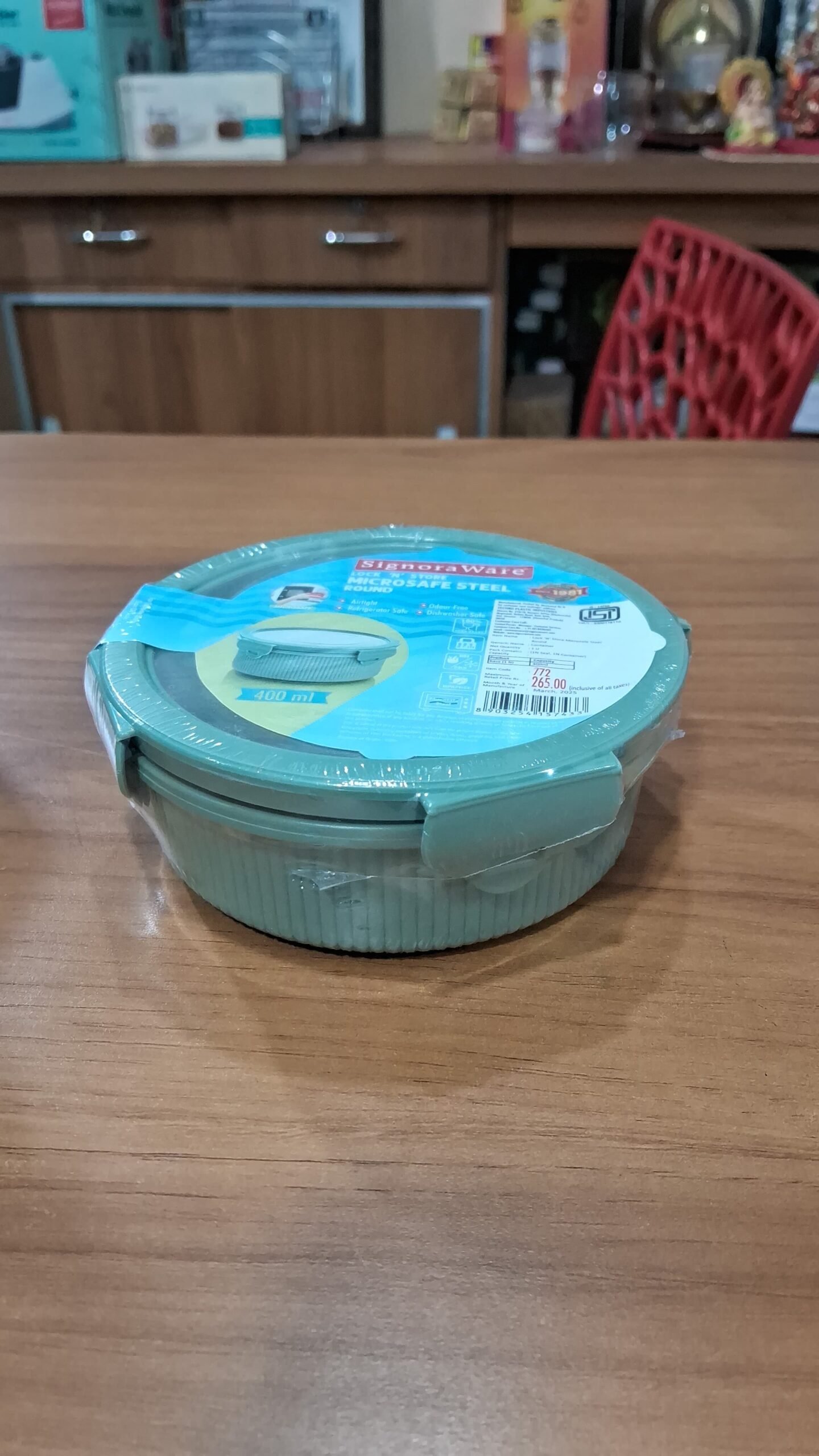 Be the first to review “SIGNORAWARE LOCK AND STORE MICROWAVE SAFE SS ROUND CONTAINER | MISC | CONTAINER,JAR,DABBA,STEEL | | ROUND 400 ML” Cancel reply