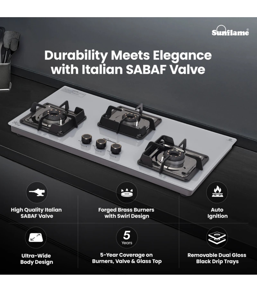 SUNFLAME HOB TOP | SUNFLAME | GAS STOVE,BURNER,CHULHA | SHA 380 ABS | 3 BURNER