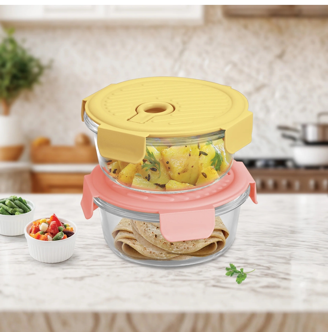 TREO LUMINO FRESH BOROSILICATE GLASS ROUND CONTAINER | MILTON | CONTAINER,GLASS | | 400 ML