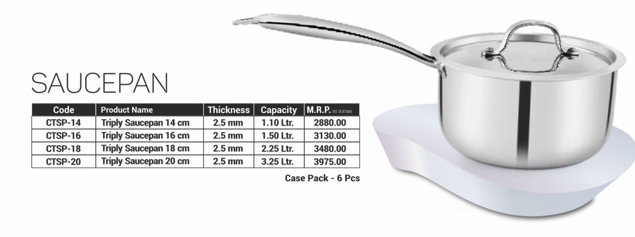 TRIPLY SAUCE PAN ISI | PNB | TRIPLY,STEEL,SAUCE PAN | | 16 CM 1.5 L