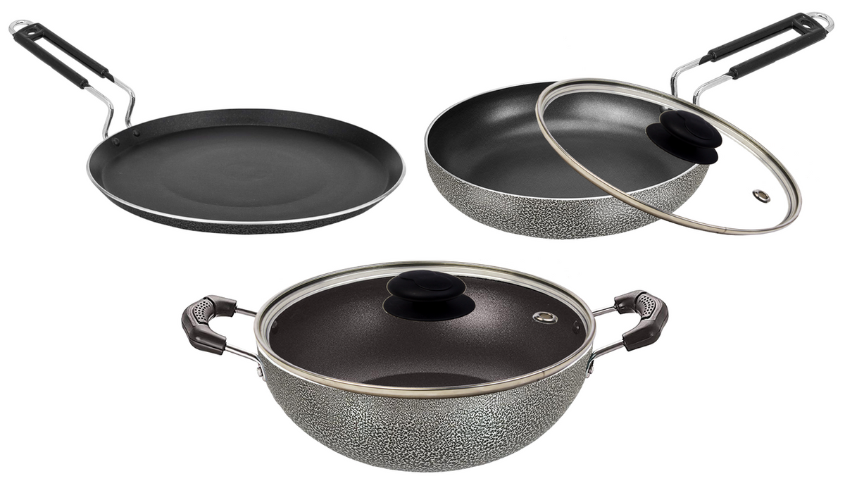TUFF PLUS FLAT TAWA | CRYSTAL | KADAI,FRY PAN,SAUCE PAN | CTV099 | 4 PCS SET